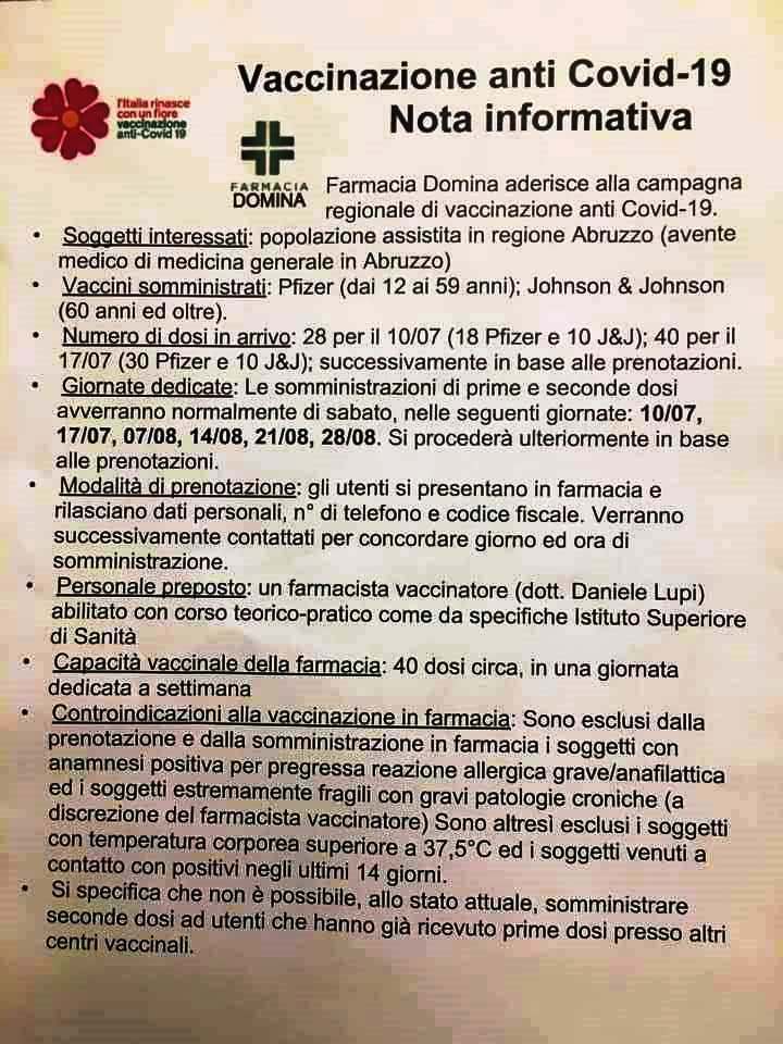 VACCINAZIONE ANTI COVID-19 INFORMATIVA Pubblicata ven 16 lug, 2021