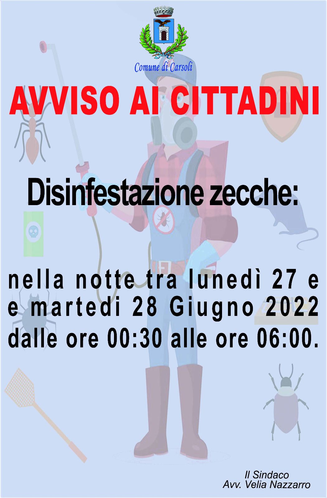 Avviso disinfestazione zecche Pubblicata lun 27 giu, 2022