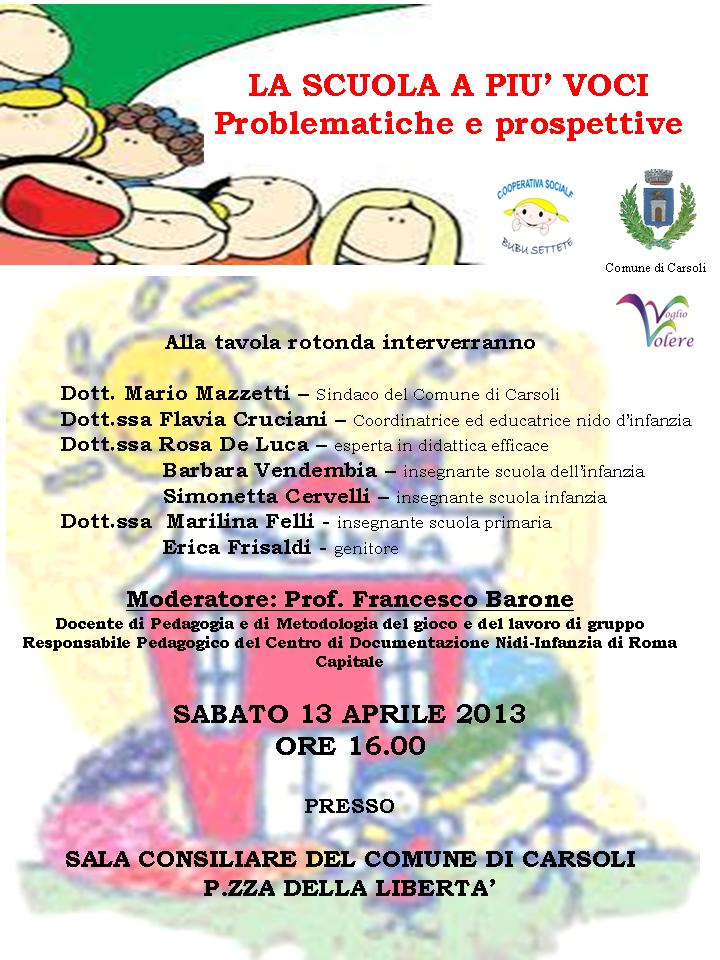 Sabato 13 aprile 2013 ore 16.00 presso la sala consiliare del comune di Carsoli