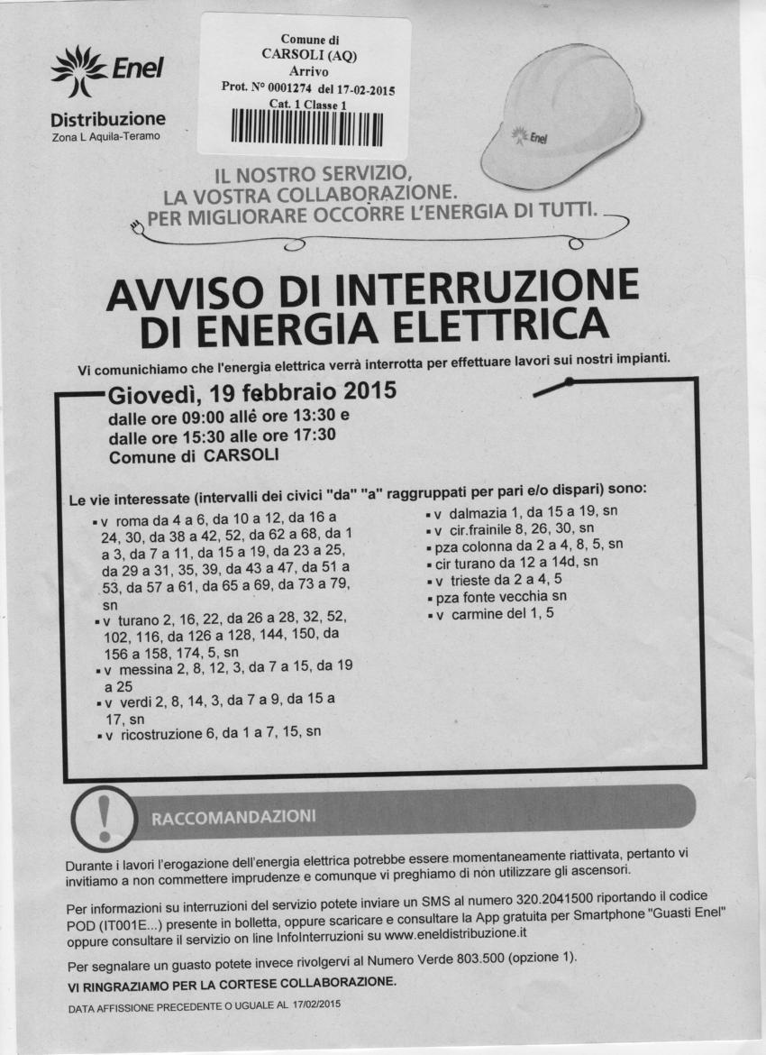 Avviso di interruzione di energia elettrica Pubblicata mar 17 feb, 2015