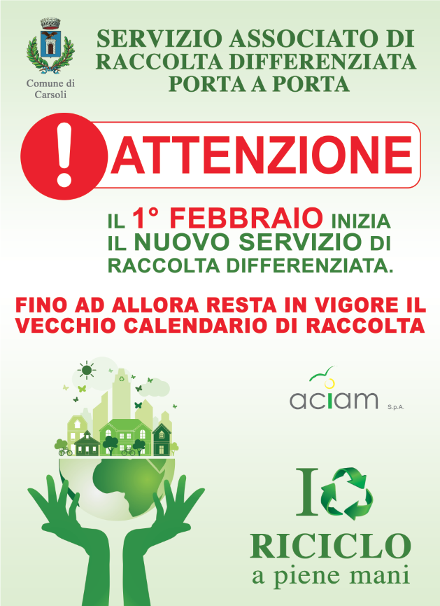 Dal 1° febbraio 2017 inizia il nuovo servizio di raccolta differenziata